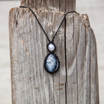 The combination of Dendritic Agate - "The Gentle Light" & Pearl - "Signifying Innocence" offers a powerful alliance that supports the wearer with grounded calm, emotional balance, growth and wisdom, rooted intuitive clarity, deep inner peace and gentleness, and harmonious relationships.