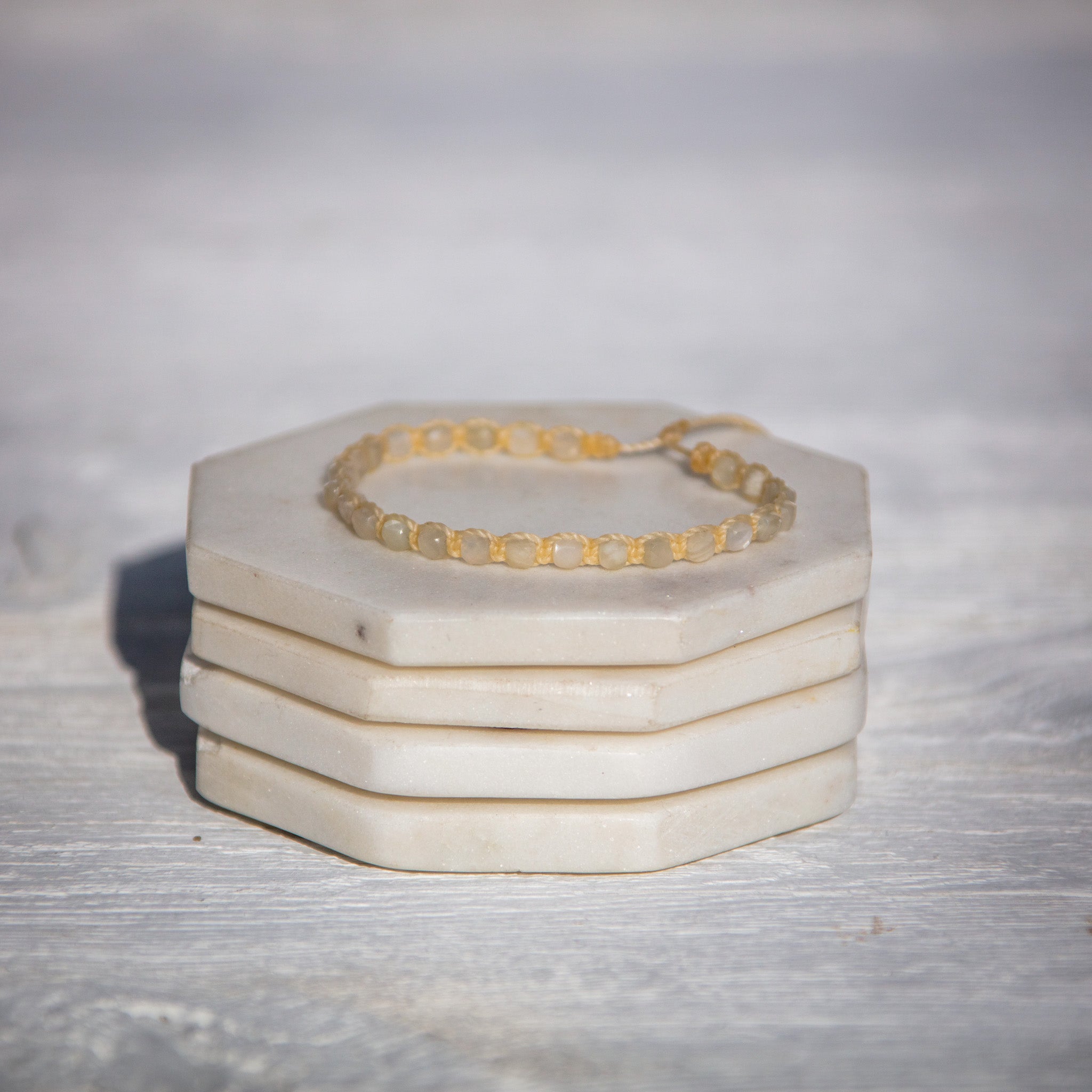 While our pieces are made with the finest Settanyl waxed threads for longevity, occasional cleaning can retain the gemstones' optimal luster. Simply used a soft, damp cloth to wipe the gemstones. Store separately from other jewelries so they don't get scratched.