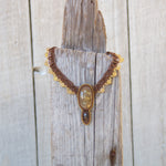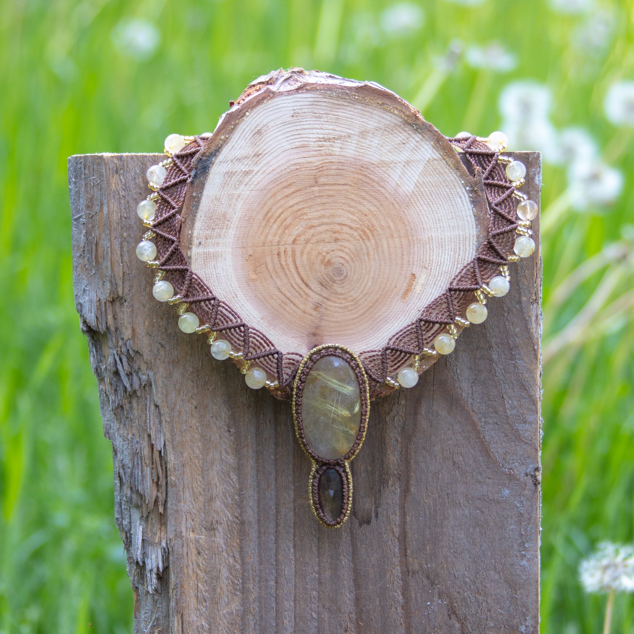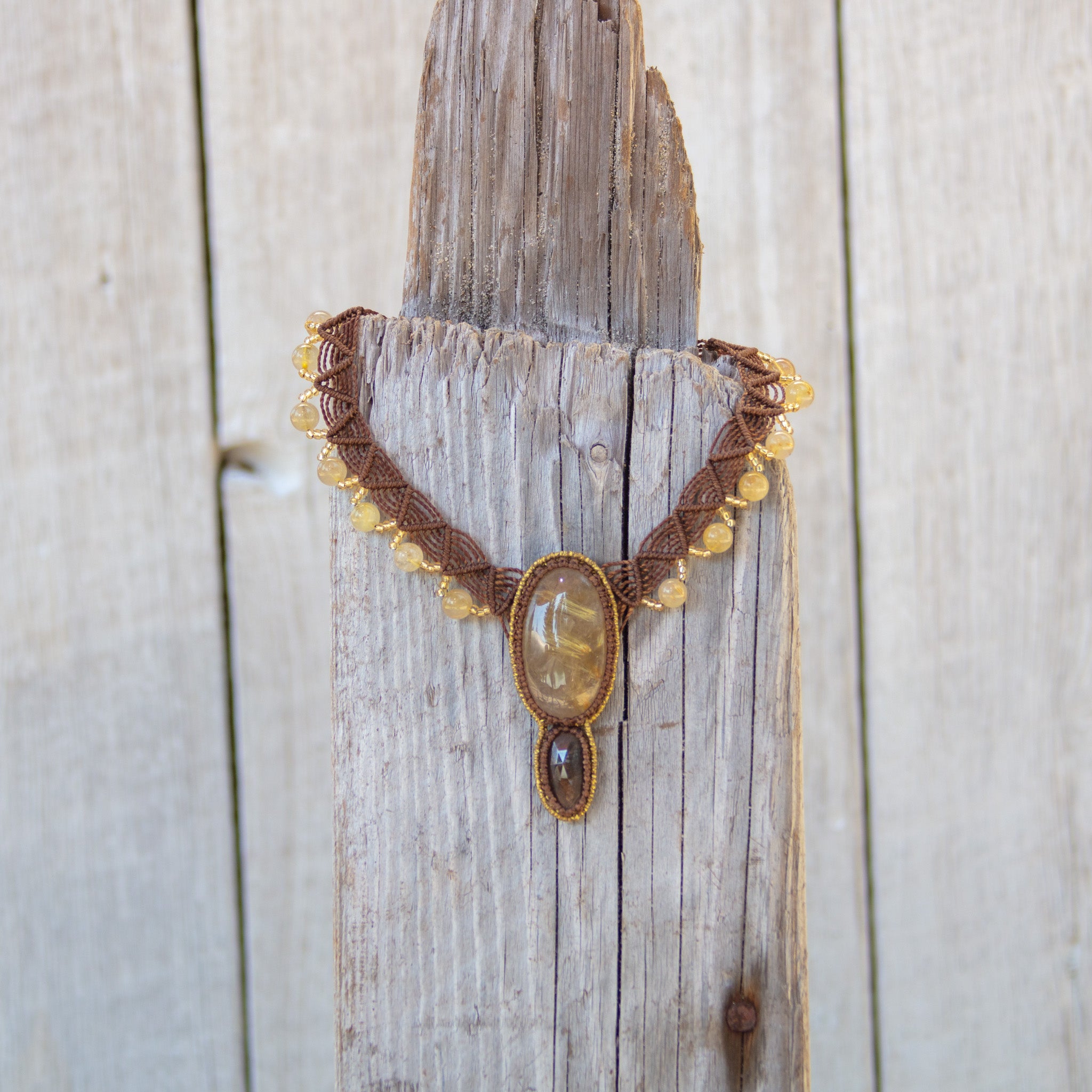 The stones featured in this piece are Rutilated Quartz - "The Illuminator" & Yellow Sapphire - "The Right Will". Spiritually these stones are known to support the wearer with amplified mental clarity and manifestation power, uniting sharp focus with prosperity-attracting confidence and divine insight. This choker is made to impress and acts as a statement to remind the world that “I have arrived”. Pair it with your favorite Bling Bijou or Earthy Embrace bracelets and feel the deep, positive and loving intentions of Susana’s jewelry.